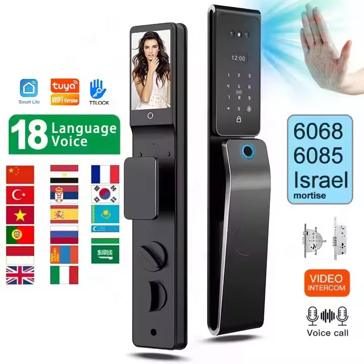- ✔ 8-in-1 Unlock Options: Fingerprint, Face ID, Passcode, IC Card, Mechanical Key, Mobile App (Tuya SmartLife), Remote Access, Video Intercom, Palm Vein Unlock